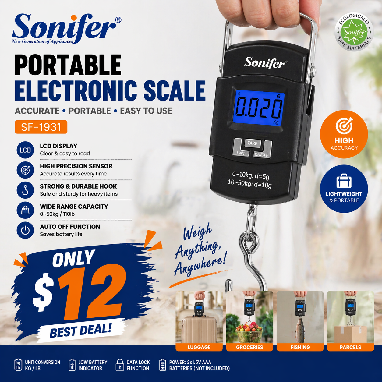 The Portable Electronic Scale (Sonifer SF-1931) is perfect for daily use — whether at home, travel, or business.